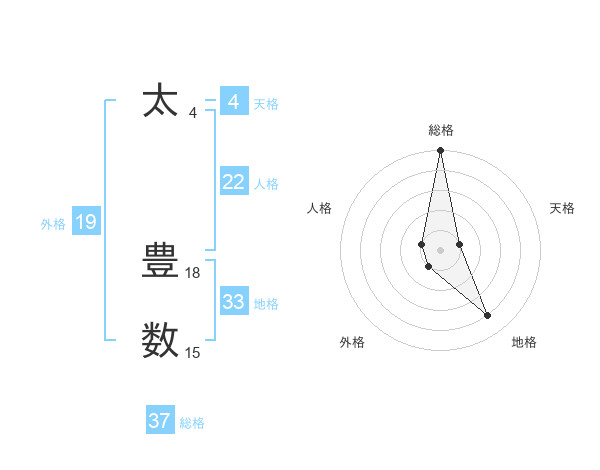 太 豊数さんの総格は37画の5点!
