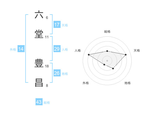 六堂 豊昌さんの総格は43画の2点!
