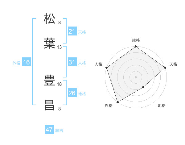 松葉 豊昌さんの総格は47画の5点!