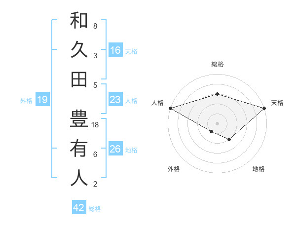 和久田 豊有人さんを姓名の画数から五運を鑑定