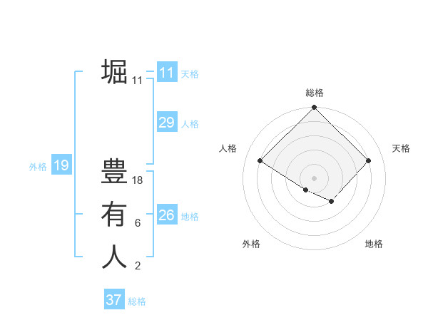 堀 豊有人さんの総格は37画の5点