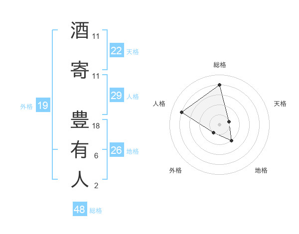 酒寄 豊有人さんの総格は48画の4点!