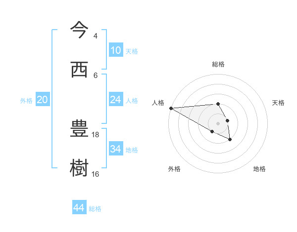 今西 豊樹さんの総格は44画の2点!