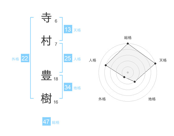 寺村 豊樹さんの総格は47画の5点!