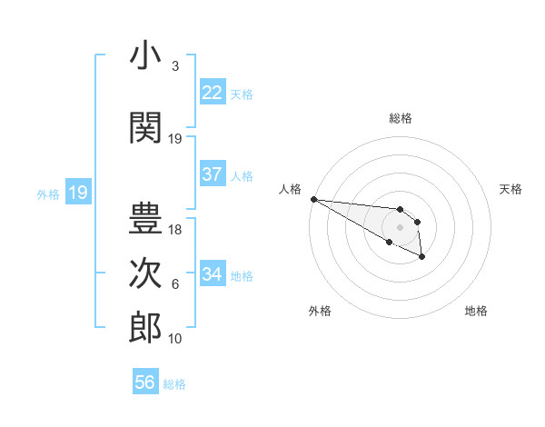 小関 豊次郎さんの地格は34画の2点