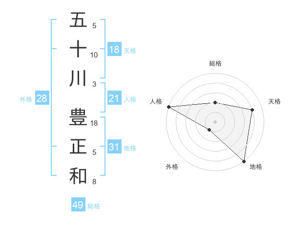 五十川 豊正和さんを姓名の画数から五運を鑑定