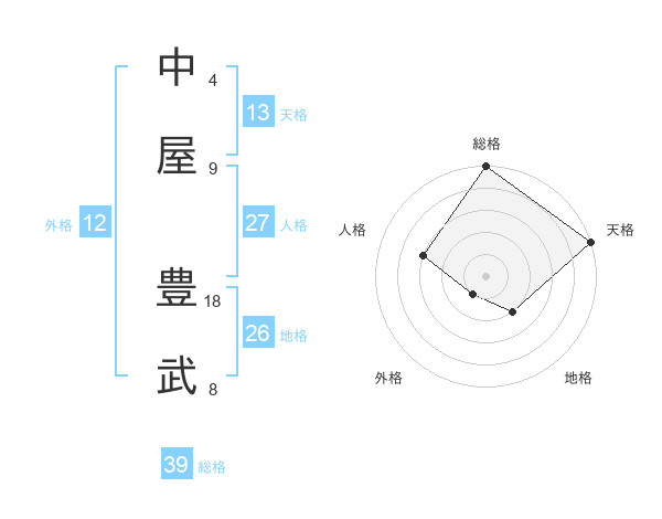 中屋 豊武さんを姓名の画数から五運を鑑定