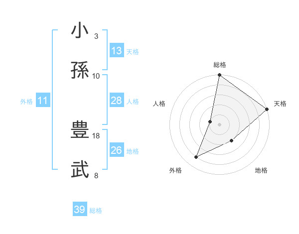 小孫 豊武さんの総格は39画の5点!