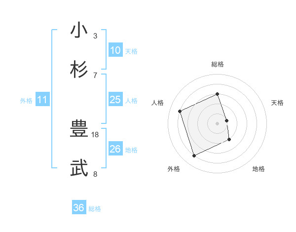 小杉 豊武さんの総格は36画の3点!
