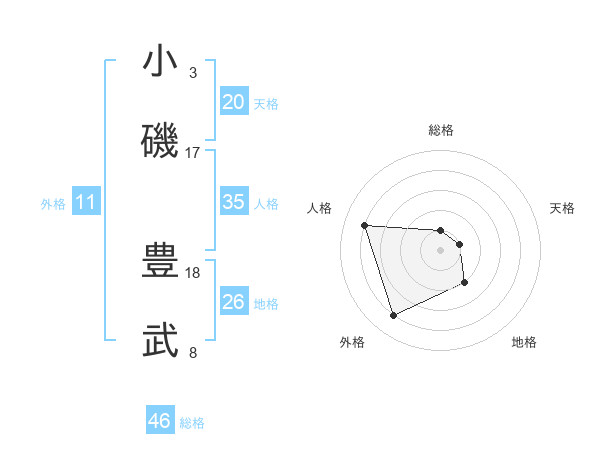 小磯 豊武さんを姓名の画数から五運を鑑定