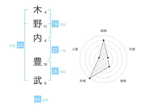 木野内 豊武さんを姓名の画数から五運を鑑定