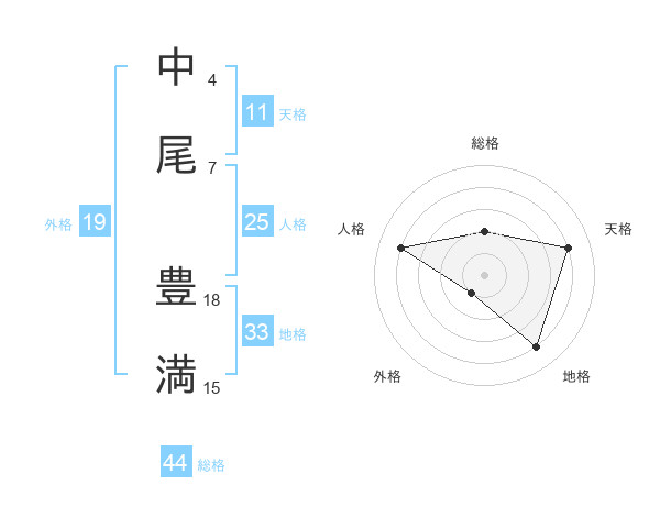 中尾 豊満さんの総格は44画の2点!