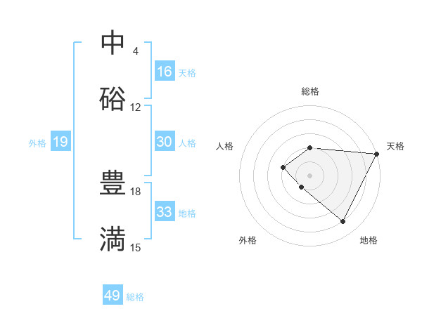 中硲 豊満さんの天格は16画の5点!