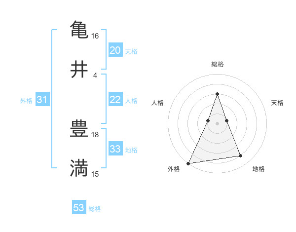 亀井 豊満さんを姓名の画数から五運を鑑定