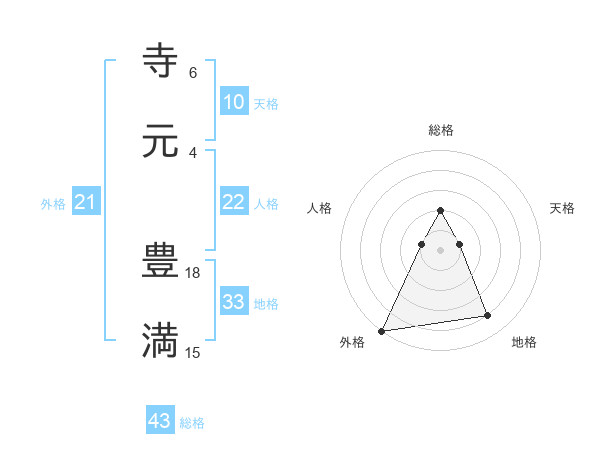 寺元 豊満さんの総格は43画の2点!