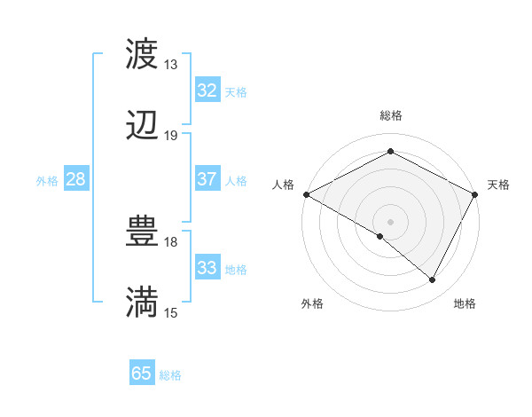 渡辺 豊満さんの総格は65画の4点!