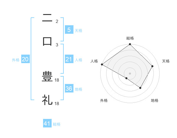 二口 豊礼さんを姓名の画数から五運を鑑定