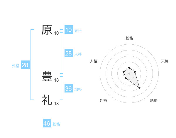 原 豊礼さんの総格は46画の1点!