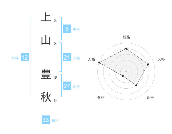 上山 豊秋さんの総格は33画の4点!
