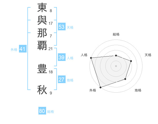 東與那覇 豊秋さんを姓名の画数から五運を鑑定