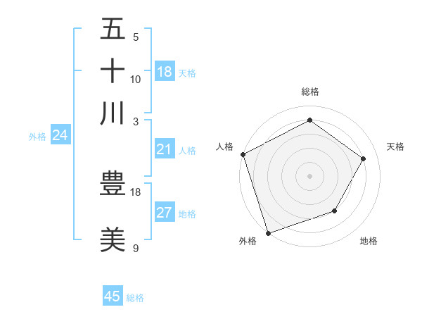 五十川 豊美さんを姓名の画数から五運を鑑定