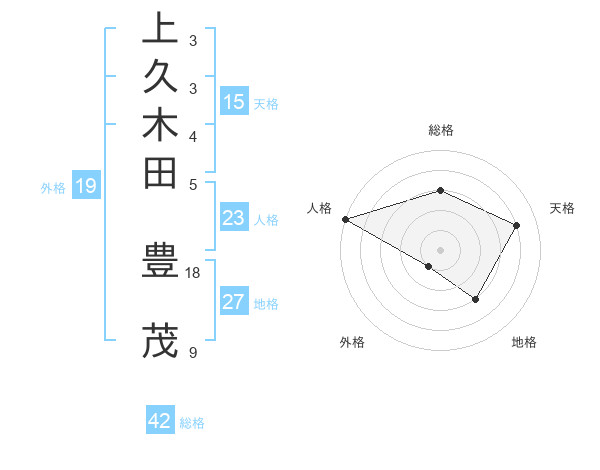 上久木田 豊茂さんの総格は42画の3点!