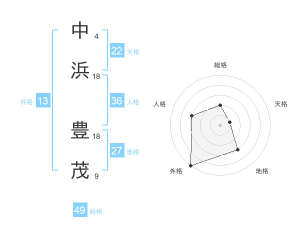 中浜 豊茂さんの総格は49画の2点!