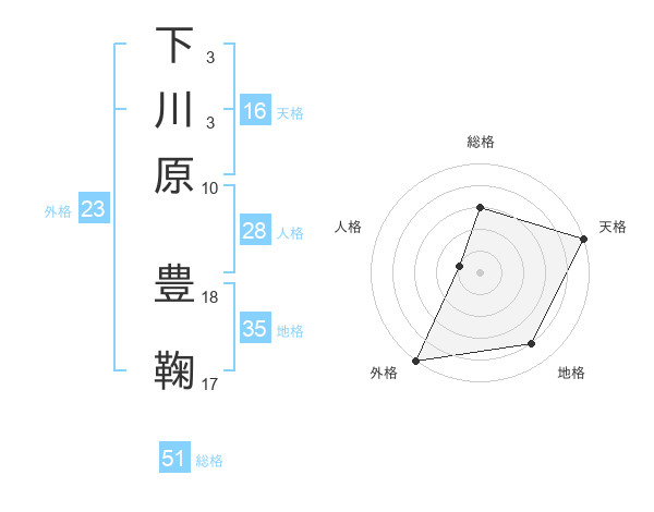 下川原 豊鞠さんを姓名の画数から五運を鑑定