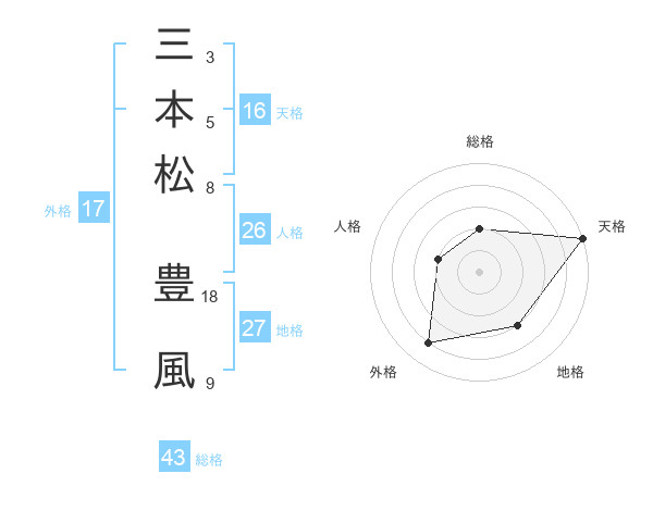 三本松 豊風さんの総格は43画の2点!