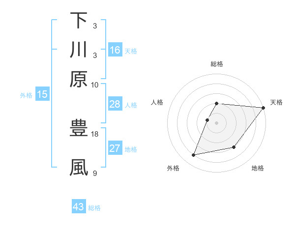 下川原 豊風さんを姓名の画数から五運を鑑定