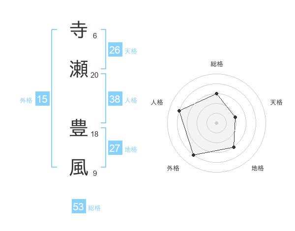 寺瀬 豊風さんの総格は53画の3点!