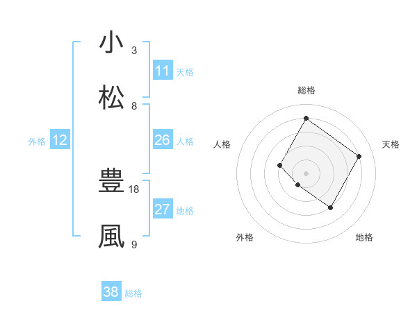 小松 豊風さんの総格は38画の4点!