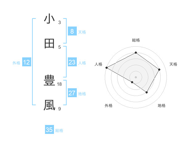 小田 豊風さんの総格は35画の4点!