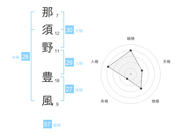那須野 豊風さんを姓名の画数から五運を鑑定