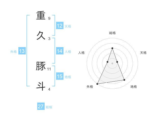 重久 豚斗さんの総格は27画の3点!