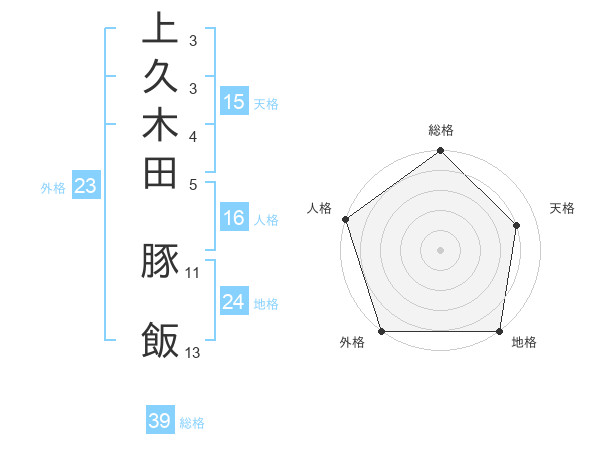 上久木田 豚飯さんを姓名の画数から五運を鑑定
