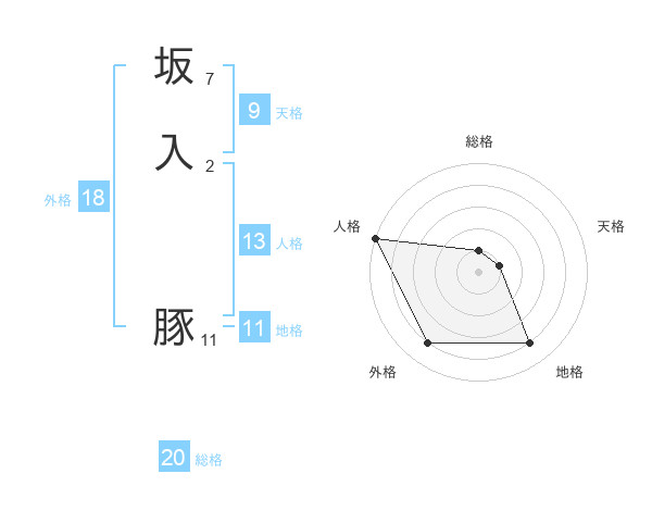 坂入 豚さんを姓名の画数から五運を鑑定