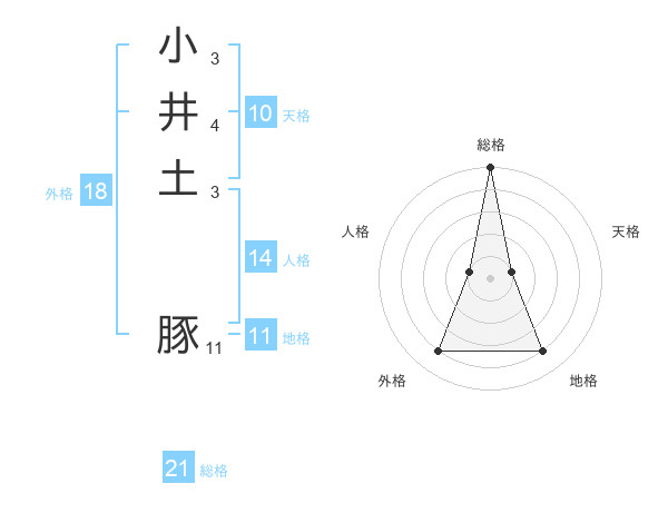 小井土 豚さんの総格は21画の5点!