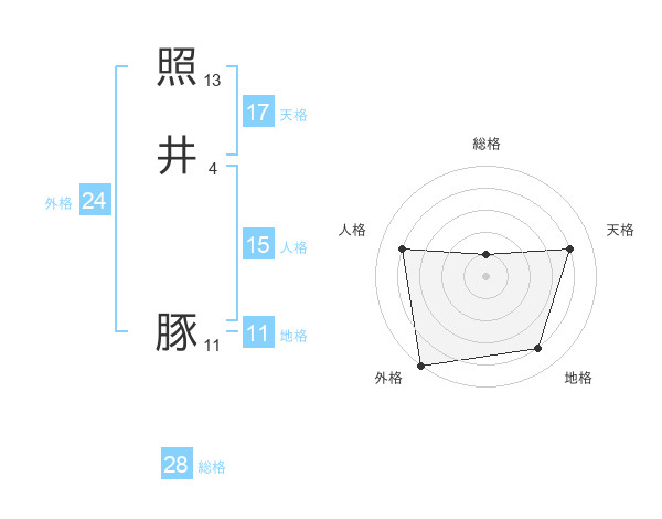 照井 豚さんの天格は17画の4点!