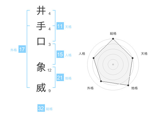 井手口 象威さんの総格は32画の5点!