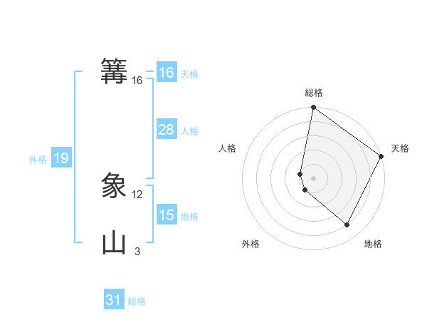篝 象山さんの天格は16画の5点!
