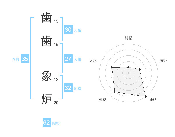 歯歯 象炉さんの外格は35画の4点!