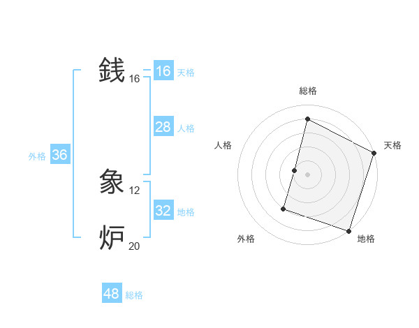 銭 象炉さんの総格は48画の4点!