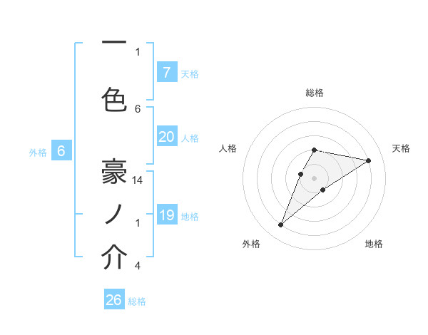 一色 豪ノ介さんを姓名の画数から五運を鑑定