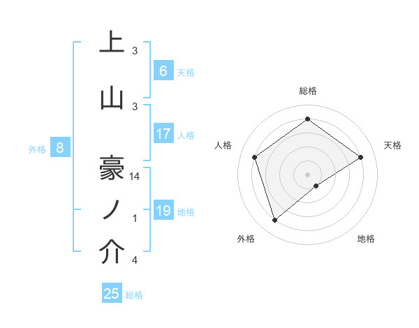 上山 豪ノ介さんの外格は8画の4点!