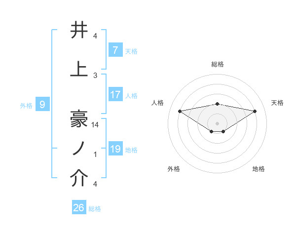 井上 豪ノ介さんを姓名の画数から五運を鑑定