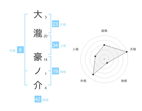 大瀧 豪ノ介さんを姓名の画数から五運を鑑定