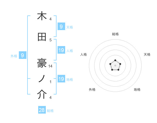 木田 豪ノ介さんを姓名の画数から五運を鑑定