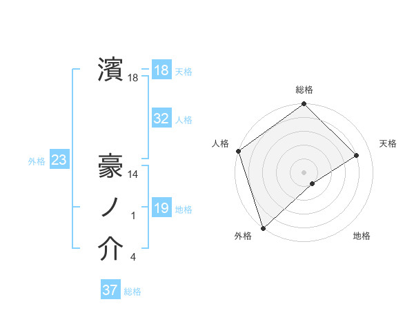 濱 豪ノ介さんを姓名の画数から五運を鑑定
