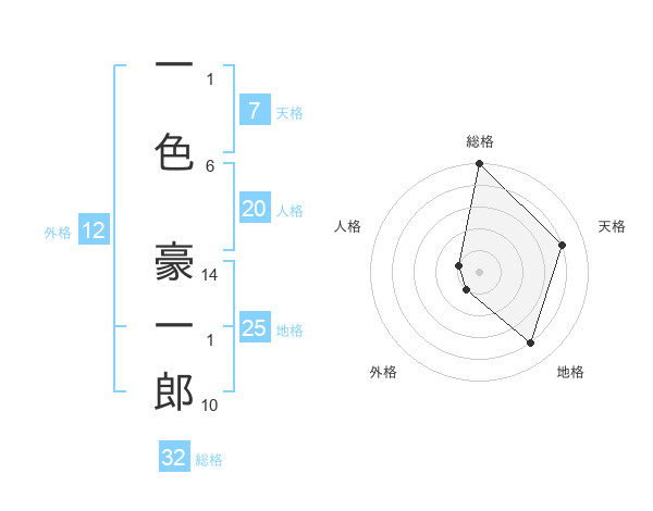 一色 豪一郎さんの総格は32画の5点!